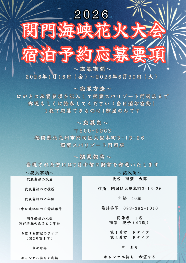 ニュース 2026.01.16 2026年関門海峡花火大会の宿泊予約応募に関しまして